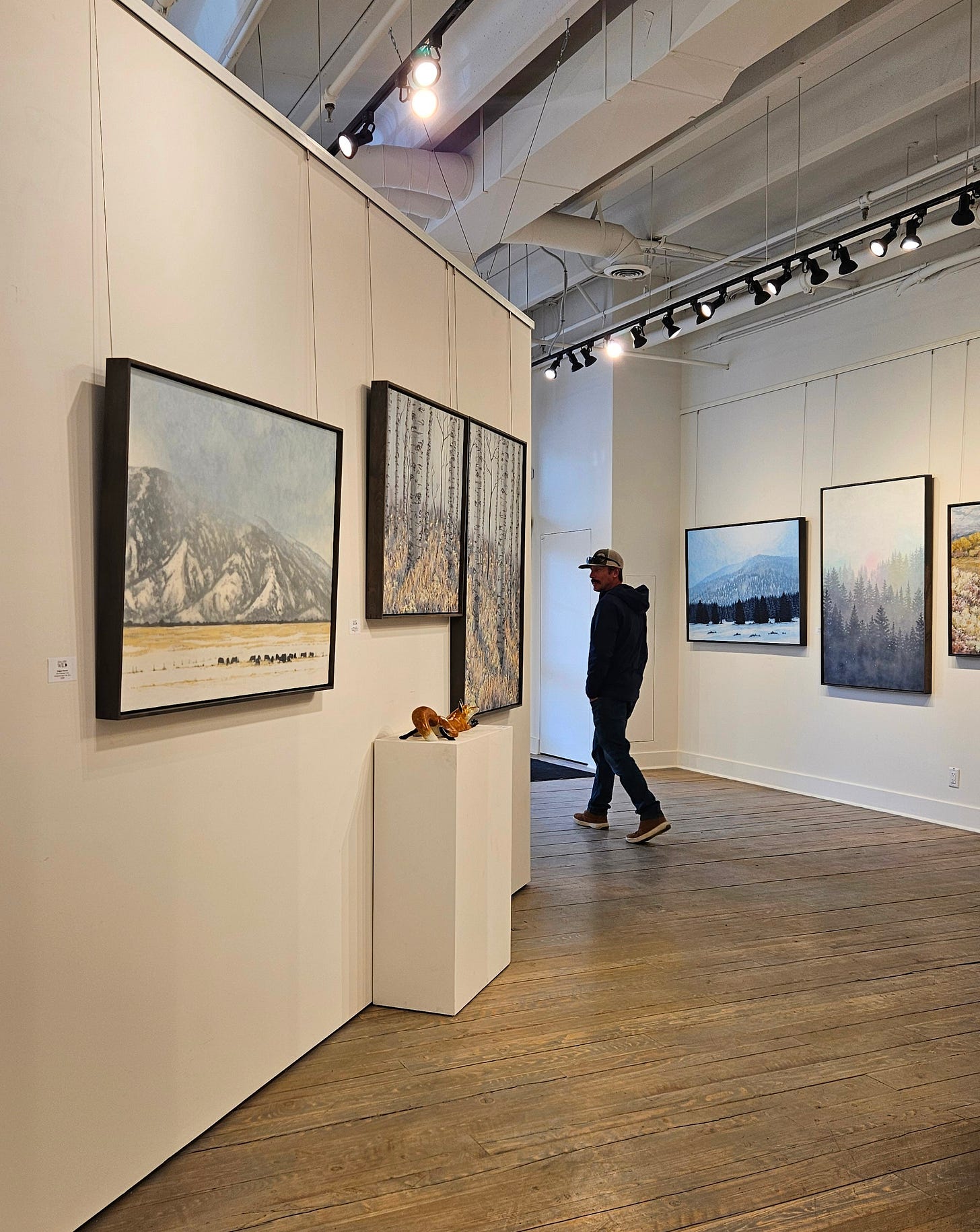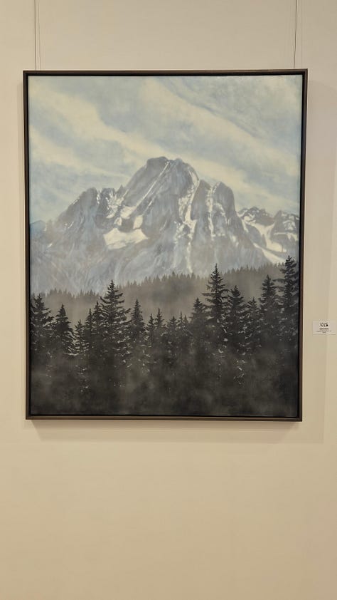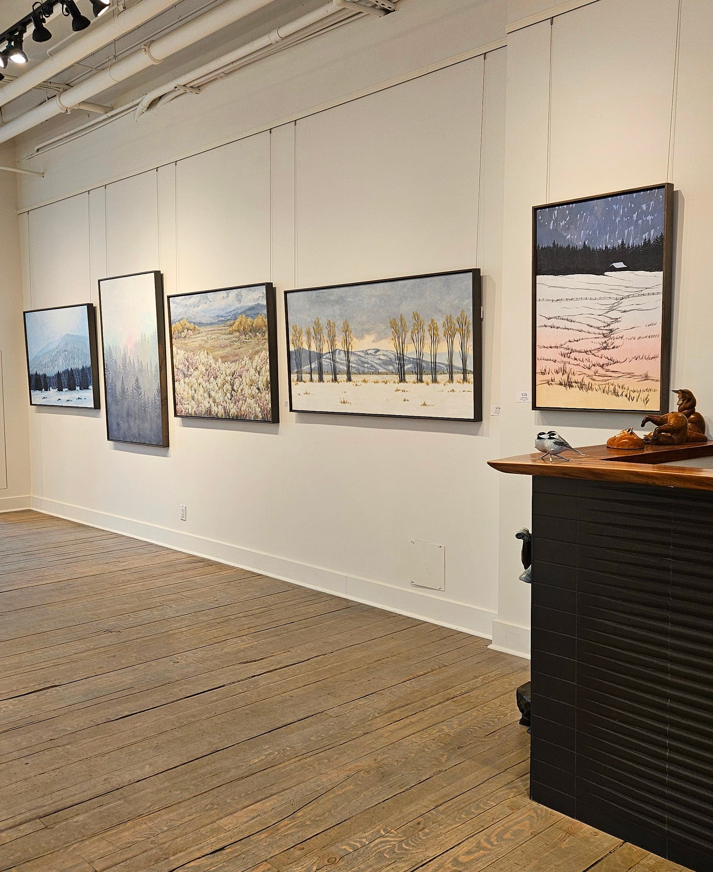 We have returned from Jackson and my show at Gallery Wild and had a lovely time, and I was pleased with initial sales, and especially happy at how all of it looked hung up in the gallery. Again, kudos to the wonderful people at Gallery Wild for all their hard work, especially owner/artist Carrie Wild. We took a lovely walk inside Grand Teton National Park, skied at Jackson Hole, spent a lot of time in the hot tub of our hotel, and ended the trip at a favorite hot spring on the way home.